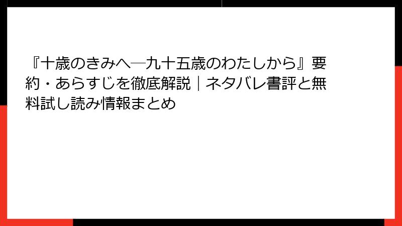 『十歳のきみへ―九十五歳のわたしから』要約・あらすじを徹底解説|ネタバレ書評と無料試し読み情報まとめ