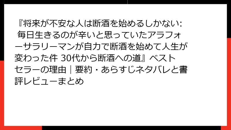 『将来が不安な人は断酒を始めるしかない: 毎日生きるのが辛いと思っていたアラフォーサラリーマンが自力で断酒を始めて人生が変わった件 30代から断酒への道』ベストセラーの理由|要約・あらすじネタバレと書評レビューまとめ