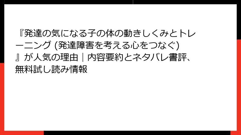 発達の気になる子の体の動きしくみとトレーニング:無料試し読みと中古入手ガイド