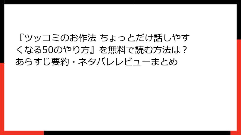 『ツッコミのお作法 ちょっとだけ話しやすくなる50のやり方』を無料で読む方法は?あらすじ要約・ネタバレレビューまとめ
