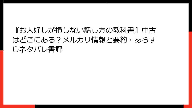 『お人好しが損しない話し方の教科書』中古はどこにある?メルカリ情報と要約・あらすじネタバレ書評