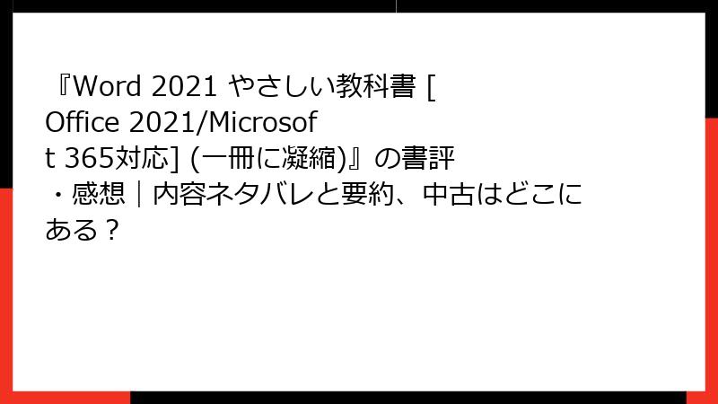 『Word 2021 やさしい教科書 [Office 2021/Microsoft 365対応] (一冊に凝縮)』の書評・感想|内容ネタバレと要約、中古はどこにある?