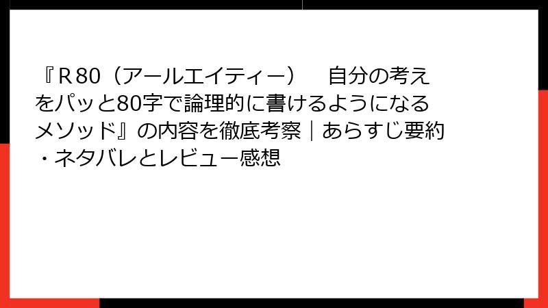 『R80(アールエイティー) 自分の考えをパッと80字で論理的に書けるようになるメソッド』の内容を徹底考察|あらすじ要約・ネタバレとレビュー感想