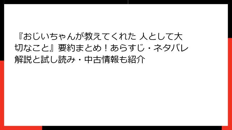 おじいちゃんが教えてくれた 人として大切なこと – 無料で味わう方法と中古の宝探し
