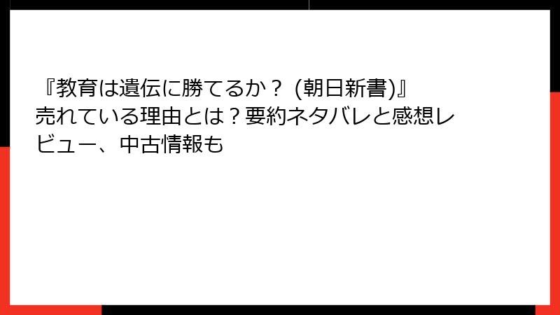 『教育は遺伝に勝てるか? (朝日新書)』売れている理由とは?要約ネタバレと感想レビュー、中古情報も