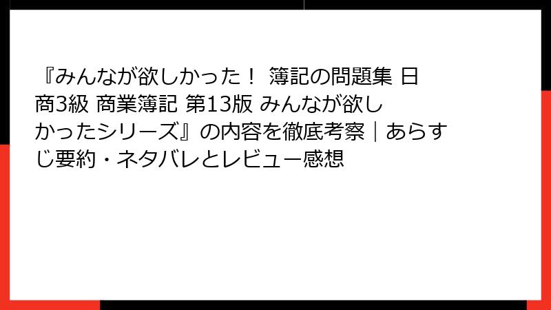 日商簿記3級合格への最強パートナー!『みんなが欲しかった! 簿記の問題集 日商3級 商業簿記 第13版』詳細レビュー