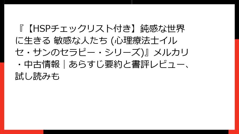 『【HSPチェックリスト付き】鈍感な世界に生きる 敏感な人たち (心理療法士イルセ・サンのセラピー・シリーズ)』メルカリ・中古情報|あらすじ要約と書評レビュー、試し読みも