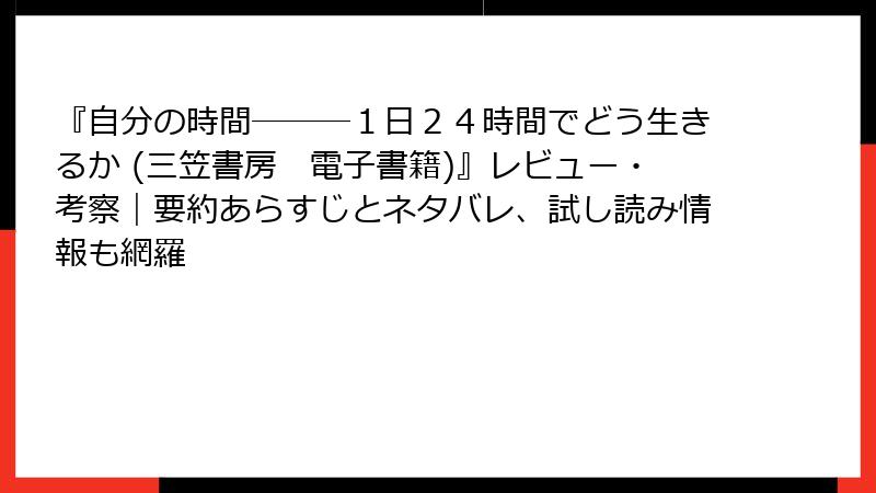 『自分の時間―――1日24時間でどう生きるか (三笠書房 電子書籍)』レビュー・考察|要約あらすじとネタバレ、試し読み情報も網羅