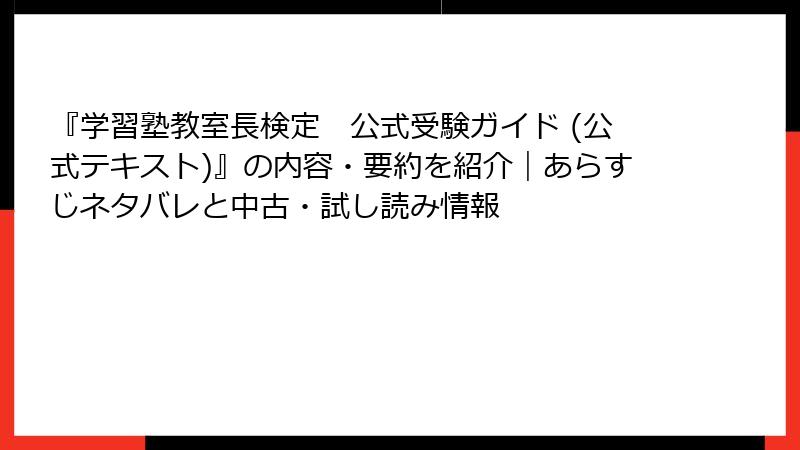学習塾業界で活躍する教室長を目指す人にとって、必須の知識を体系的に学ぶための書籍として注目を集めているのが、『学習塾教室長検定 公式受験ガイド (公式テキスト)』です。この本は、単なる試験対策書ではなく、塾の現場で直面する課題を解決するための指針を提供します。著者の学習塾教室長検定協会と山本正史氏が、業界のリアルな問題点を基に執筆した一冊で、2021年春にスタートした検定の公式ガイドとして位置づけられています。今回は、この書籍のあらすじから詳細な内容要約まで、ネタバレ満載で徹底的に解説します。検定受験を考えている方や、塾経営に携わる方は必読です。