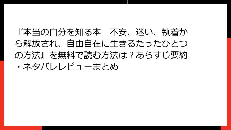 『本当の自分を知る本 不安、迷い、執着から解放され、自由自在に生きるたったひとつの方法』を無料で読む方法は?あらすじ要約・ネタバレレビューまとめ