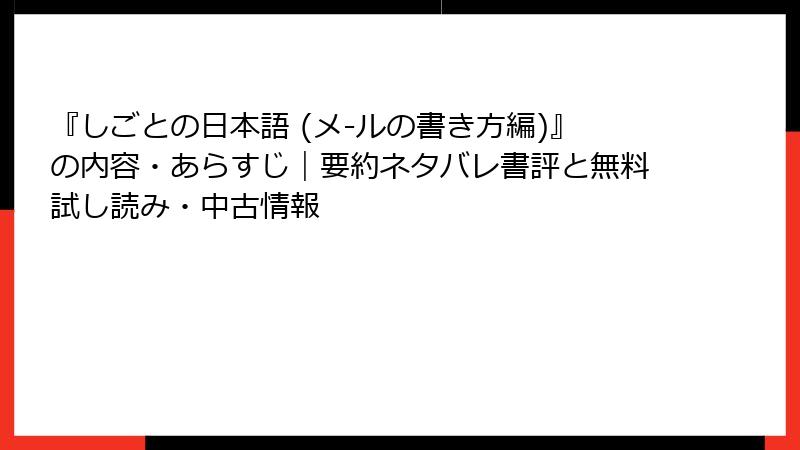 しごとの日本語 (メールの書き方編) を無料で試し読み&中古入手ガイド: 2025年最新情報