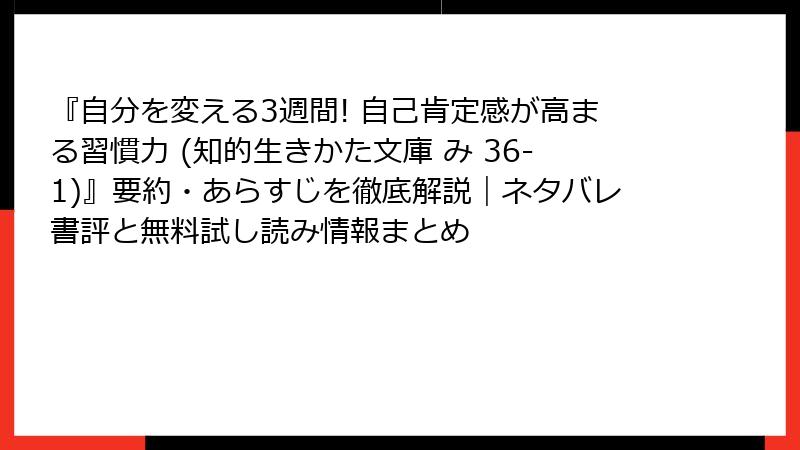 『自分を変える3週間!自己肯定感が高まる習慣力』を無料で試し読み&中古でお得にゲットする方法ガイド