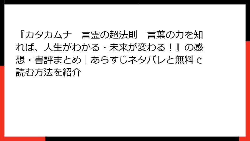 『カタカムナ 言霊の超法則 言葉の力を知れば、人生がわかる・未来が変わる!』の感想・書評まとめ|あらすじネタバレと無料で読む方法を紹介