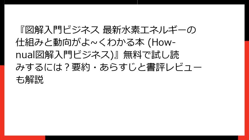 『図解入門ビジネス 最新水素エネルギーの仕組みと動向がよ~くわかる本 (How-nual図解入門ビジネス)』無料で試し読みするには?要約・あらすじと書評レビューも解説