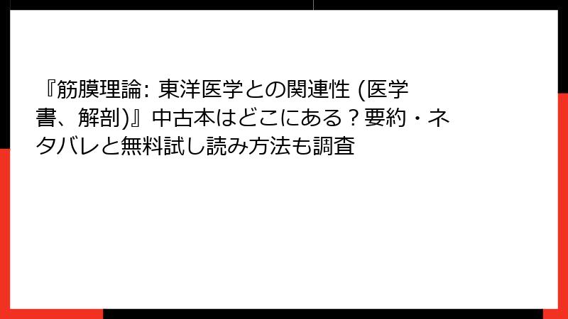 『筋膜理論: 東洋医学との関連性』を無料で試し読み&中古本探しの完全ガイド
