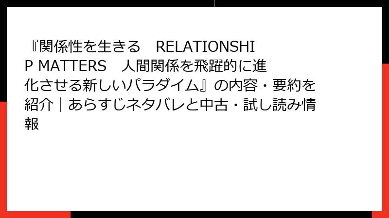 『関係性を生きる RELATIONSHIP MATTERS』:無料試し読みと中古版の探し方ガイド