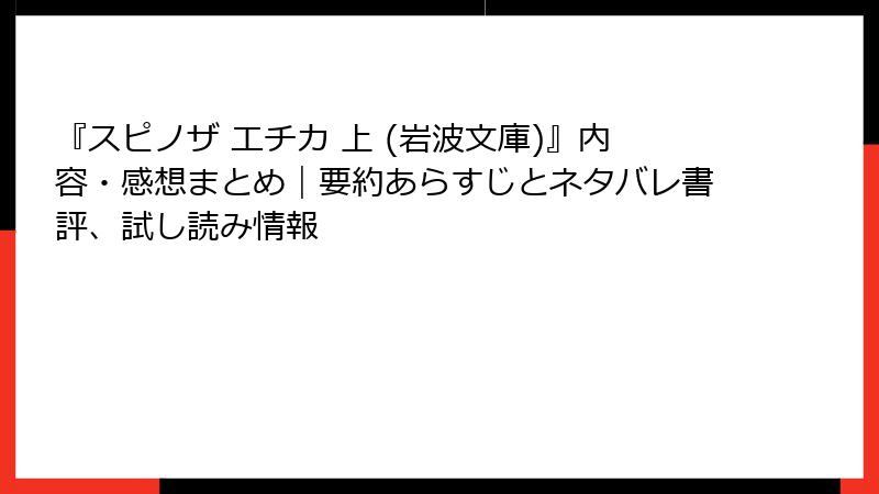 - 長期ベストセラー度: 岩波文庫の哲学部門で上位3位以内。ブクログおすすめランキングでもスピノザ作品1位圏内。