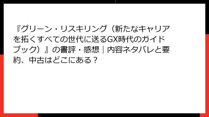 『グリーン・リスキリング(新たなキャリアを拓くすべての世代に送るGX時代のガイドブック)』の書評・感想|内容ネタバレと要約、中古はどこにある?