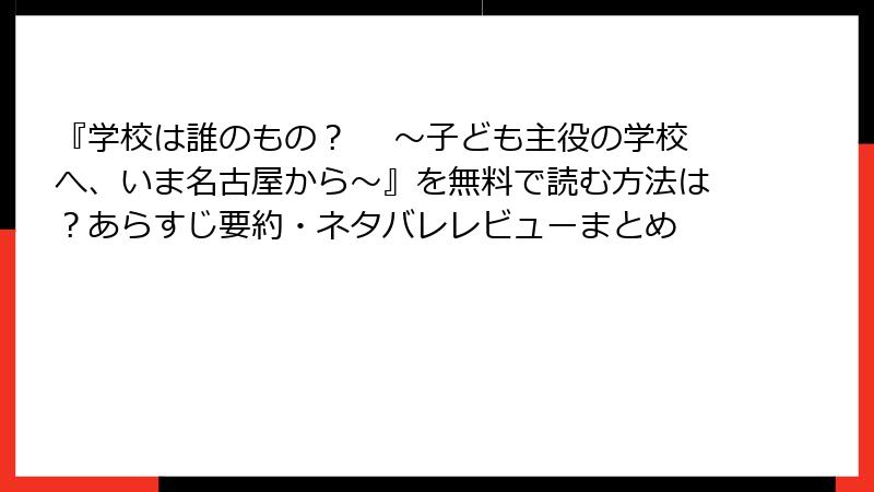 書籍アクセスガイド:『学校は誰のもの? ~子ども主役の学校へ、いま名古屋から~』を無料で試し読み&中古でお得に手に入れる方法