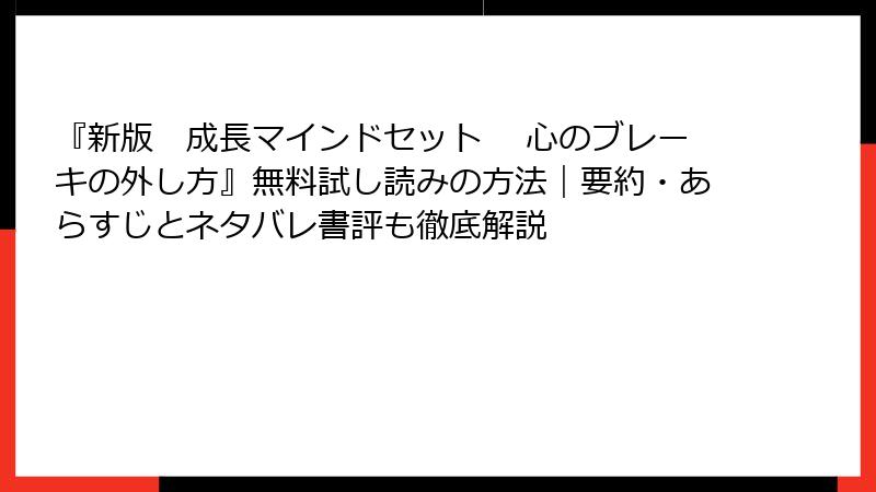 新版『成長マインドセット 心のブレーキの外し方』を無料で試し読み&中古でお得にゲット! 2025年最新ガイド