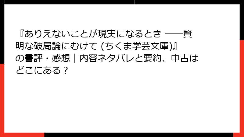 ありえないことが現実になるとき:誰にオススメ? 破局を賢く見据える哲学の贈り物