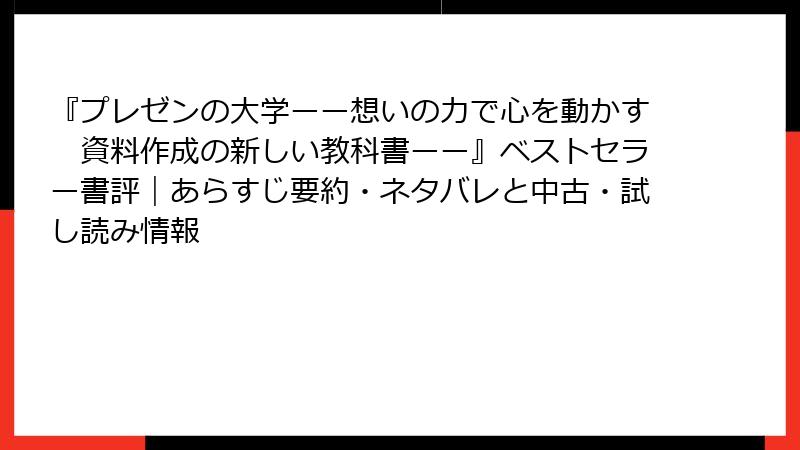 『プレゼンの大学ーー想いの力で心を動かす 資料作成の新しい教科書ーー』ベストセラー書評|あらすじ要約・ネタバレと中古・試し読み情報