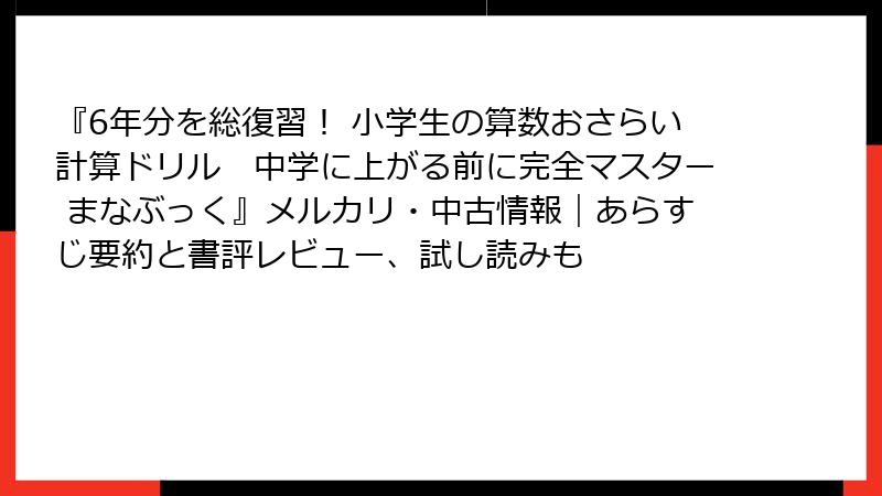 『6年分を総復習! 小学生の算数おさらい計算ドリル 中学に上がる前に完全マスター まなぶっく』メルカリ・中古情報|あらすじ要約と書評レビュー、試し読みも