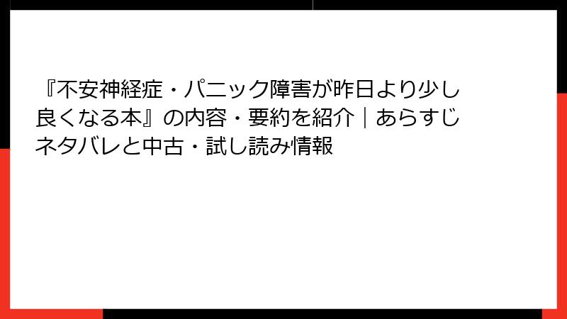 3. 『不安神経症・パニック障害が昨日より少し良くなる本』を無料で試し読み&中古で手に入れるコツ:2025年最新ガイド