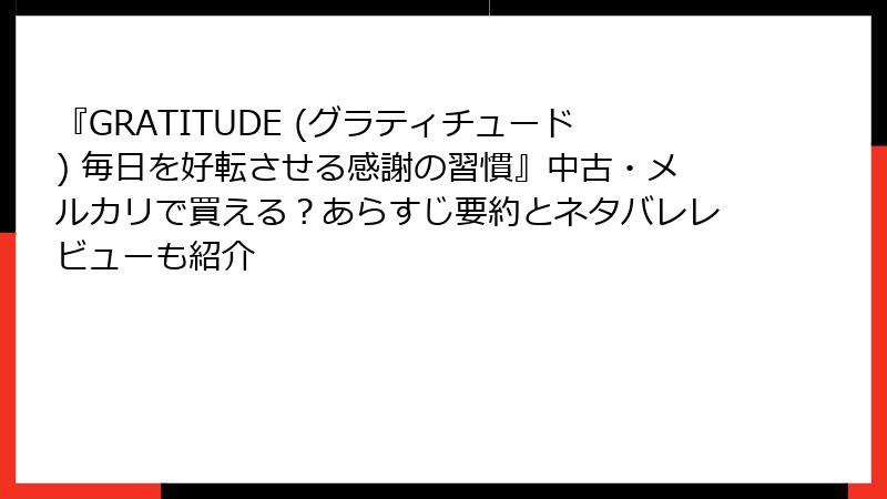 - 『GRATITUDE (グラティチュード) 毎日を好転させる感謝の習慣』無料試し読み&中古入手ガイド:手軽に感謝の第一歩を踏み出そう