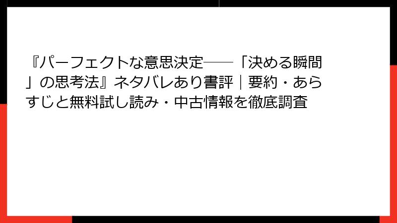 パーフェクトな意思決定――「決める瞬間」の思考法 をお得に試す:無料試し読み&中古版入手完全ガイド