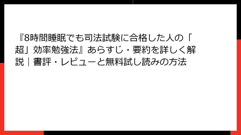 8時間睡眠でも司法試験に合格した人の「超」効率勉強法:無料試し読みと中古入手の完全ガイド