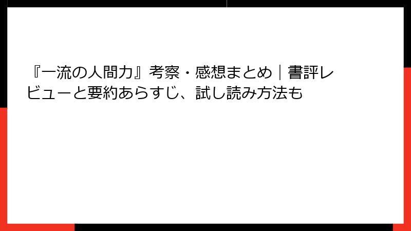 『一流の人間力』考察・感想まとめ|書評レビューと要約あらすじ、試し読み方法も