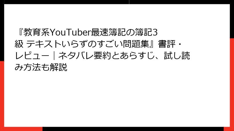 教育系YouTuber最速簿記の簿記3級 テキストいらずのすごい問題集:徹底レビューとネタバレ満載の要約