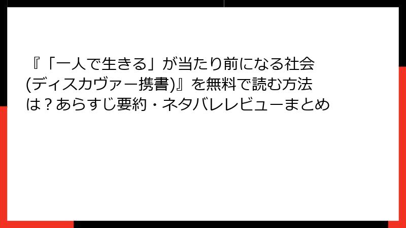 『「一人で生きる」が当たり前になる社会』を無料で試し読み&中古でゲットする方法 ~ソロ活の第一歩は本から~