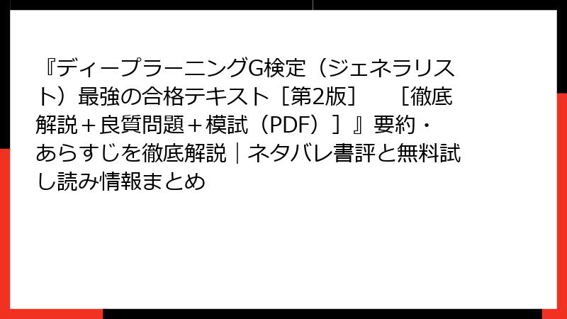 『ディープラーニングG検定(ジェネラリスト)最強の合格テキスト[第2版] [徹底解説+良質問題+模試(PDF)]』要約・あらすじを徹底解説|ネタバレ書評と無料試し読み情報まとめ