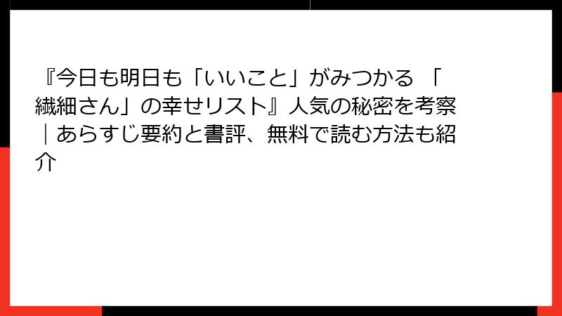 『今日も明日も「いいこと」がみつかる 「繊細さん」の幸せリスト』読者のレビュー・感想・書評まとめ(批判意見も詳しく)