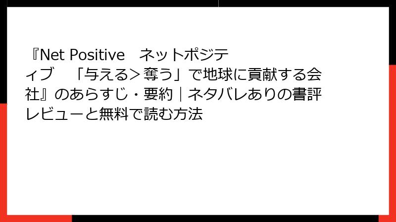 2. 『Net Positive ネットポジティブ 「与える>奪う」で地球に貢献する会社』レビュー・書評まとめ(肯定的・批判的両方含む)