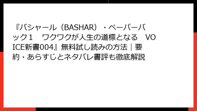 『バシャール(BASHAR)・ペーパーバック1 ワクワクが人生の道標となる VOICE新書004』無料試し読みの方法|要約・あらすじとネタバレ書評も徹底解説
