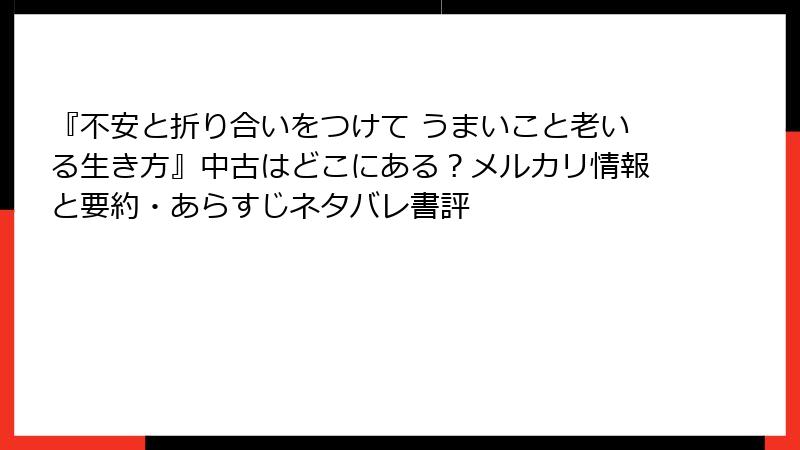 『不安と折り合いをつけて うまいこと老いる生き方』を無料試し読みする方法と中古本の入手ガイド
