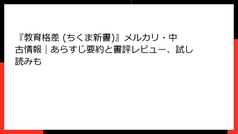 『教育格差 (ちくま新書)』メルカリ・中古情報|あらすじ要約と書評レビュー、試し読みも