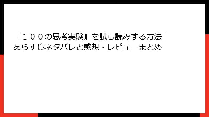 『100の思考実験』を無料で試し読み&中古で入手する方法ガイド