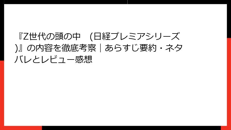 - 読みやすさ:日経プレミアシリーズらしい軽快な文体で「一気に読めた」「図表が多くわかりやすい」。Z世代本の中では「かなりよい」「良本」との比較優位意見が多い。