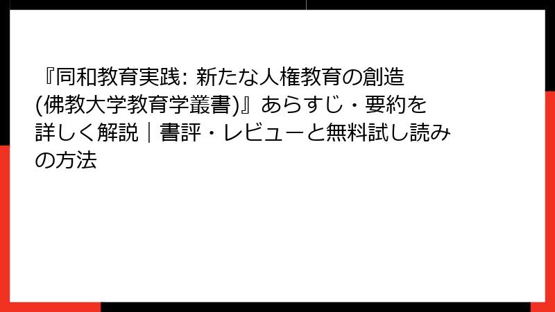 『同和教育実践: 新たな人権教育の創造 (佛教大学教育学叢書)』あらすじ・要約を詳しく解説|書評・レビューと無料試し読みの方法