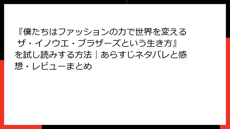 この書籍は、単なるファッション本ではなく、人生の捉え方を変える一冊だ。おすすめする理由の核心は、井上兄弟の「関わる人すべてを幸せに」という信念が、読者の価値観を揺さぶる点にある。レビュー全体で高評価が続き、「勇気が湧く」「生き方が変わる」との声が共通。著者の実体験に基づくストーリーは、理想論ではなく現実的な行動を示すため、幅広い読者に響く。もし社会を変えたいという想いがあるなら、ぜひ手に取ってほしい。