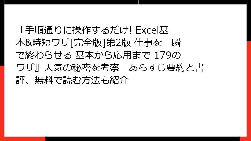 Excel仕事を劇的に効率化!『手順通りに操作するだけ! Excel基本&時短ワザ[完全版]第2版』の詳細要約とネタバレ