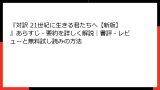 - 読みやすさ:新訳版は現代語で、抽象的な議論も具体例を交えてわかりやすい。