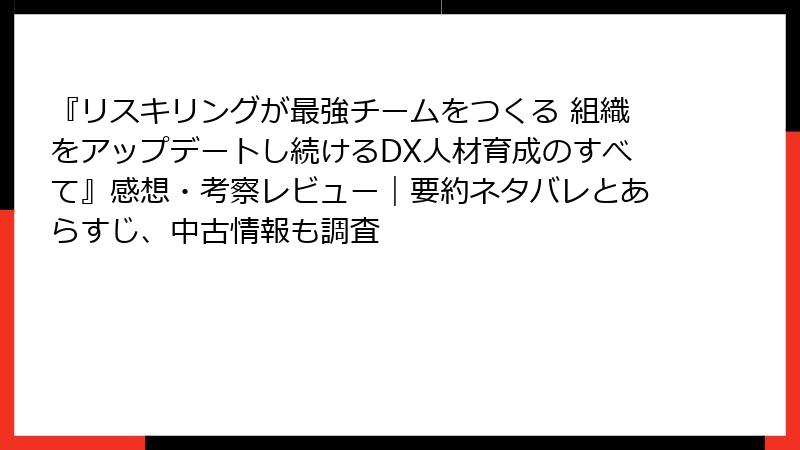 『リスキリングが最強チームをつくる 組織をアップデートし続けるDX人材育成のすべて』感想・考察レビュー|要約ネタバレとあらすじ、中古情報も調査