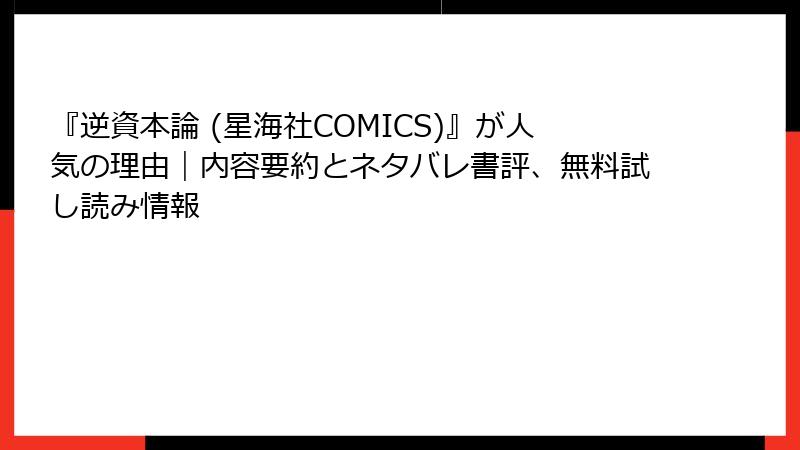『逆資本論』は発売時の話題性を活かしつつ、2025年現在も安定した支持を集める一冊です。総合ベストセラー級の大ヒットではないものの、経済漫画ジャンルでは上位の存在感を維持。重版や売上公表がない点から、爆発的ではなく着実な売れ行きと評価できます。思想対立の激しいテーマだけに、読む人を選ぶ一方で、一度手に取った読者の満足度が高い作品です。興味がある人は今からでも遅くなく、試し読みから入るのがおすすめです。