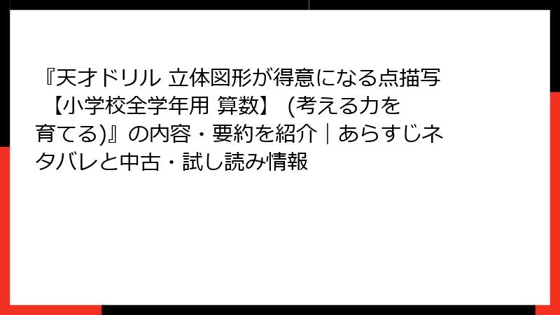 『天才ドリル 立体図形が得意になる点描写 【小学校全学年用 算数】 (考える力を育てる)』の内容・要約を紹介|あらすじネタバレと中古・試し読み情報