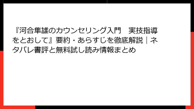 カウンセリングの古典として今も価値が高い一冊。試し読みや中古活用で、手軽に河合隼雄の思想に触れてみてください。
